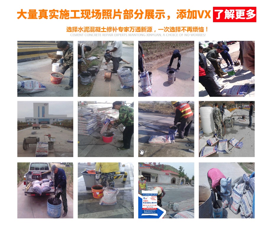 大慶萬(wàn)通新源科技有限公司獨(dú)有的混凝土路面高強(qiáng)速補(bǔ)料,是水泥混凝土路面病害修復(fù)的好材料。疲勞、凍融循環(huán)、彎曲壓力、滲水和基層破壞等原因都會(huì)引起水泥路面的破損,從而帶來(lái)高昂的維護(hù)費(fèi)用。與以往的剛性修補(bǔ)方法不同,混凝土水泥路面維修速補(bǔ)膠提供了一種獨(dú)特的柔性修補(bǔ)產(chǎn)品和技術(shù),高柔性、高抗拉性,可跨伸縮縫施工和高抗壓性使得混凝土快補(bǔ)產(chǎn)品為水泥混凝土路面提供了******性的修補(bǔ)。傳統(tǒng)的剛性修補(bǔ)方案,如環(huán)氧砂漿和快干水泥產(chǎn)品,由于其自身的粘結(jié)失效,抗疲勞性低以及與原路面不同的伸縮系數(shù),修補(bǔ)面會(huì)在短時(shí)間內(nèi)失效或產(chǎn)生新的裂縫,需要反復(fù)修補(bǔ),有效期短且費(fèi)用高昂。大慶萬(wàn)通新源科技有限公司的混凝土水泥路面維修速補(bǔ)膠可以隨原路面一起伸縮,移動(dòng),從而避免了粘結(jié)失效和產(chǎn)生新裂縫。萬(wàn)通快補(bǔ)產(chǎn)品優(yōu)異的粘結(jié)性、柔韌性和高防滑性,特別適用于水泥路面的淺層粘合修補(bǔ),多邊角混凝土板層修補(bǔ),跨伸縮縫修補(bǔ)以及路面沉陷修補(bǔ)。萬(wàn)通混凝土病害修補(bǔ)料針對(duì)混凝土起皮起沙、斷板裂縫、蜂窩麻面、坑槽露石子、漏筋掉皮、橋梁的掉皮漏筋快速通車使用時(shí)間長(zhǎng)。應(yīng)用萬(wàn)通快補(bǔ)產(chǎn)品,施工后一天就可以恢復(fù)交通。大慶萬(wàn)通新源科技有限公司的萬(wàn)通水泥路面維修速補(bǔ)膠適用于高速公路、機(jī)場(chǎng)路面、農(nóng)村村村通路面、廠坪、學(xué)校操場(chǎng)、市區(qū)公路、小區(qū)路面、橋梁、水泥路面的修補(bǔ)。使用萬(wàn)通特快補(bǔ)材料修補(bǔ)路面可以一勞永逸! 水泥地面起砂怎么辦,混凝土修補(bǔ)劑混凝土地面起砂,混凝土地面修補(bǔ),地面起砂怎么辦,